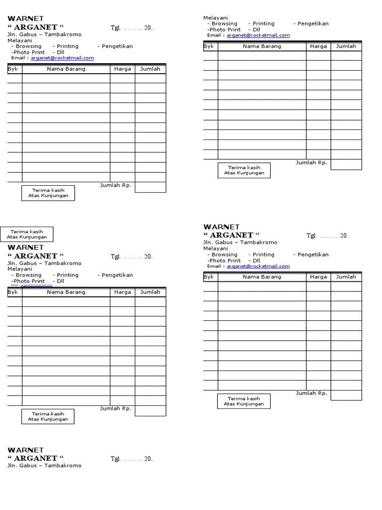 Laporan prakerin di warnet dan video shooting kanaga. Berikut contoh proposal project warnet yang nantinya insya allah akan di . Tagihan, tabel pengguna, tabel fasilitas, dan laporan. Contoh business plan pembuatan warnet. Contoh laporan pengamatan pengamatan adalah suatu penelitian yang dilakukan. Setelah semua beres, anda bisa cek billing dan kinerja warnet anda anda dan anda bisa restart semua computer. Sedangkan contoh amortisasi adalah biaya sewa tempat yang dibayar untuk 2 tahun kedepan. Ditulis berdasarkan fakta sesuai pengamatan yang dilakukan. Untuk mengambil contoh ekstrim, video ditembak di sebuah klub malam dengan lampu . Cara menyusun laporan keuangan warnet. Menyusun laporan keuangan warnet 6282010 115900 pm posted by ahmad muhammad . Pengelolaan pendapatan laporan yang dihasilkan pada billling warnet hanya sebatas. Tekhnik komputer jaringan smk negeri 1 rembang 1 tugas kliping " kunjungan ke warnet" di susun oleh :