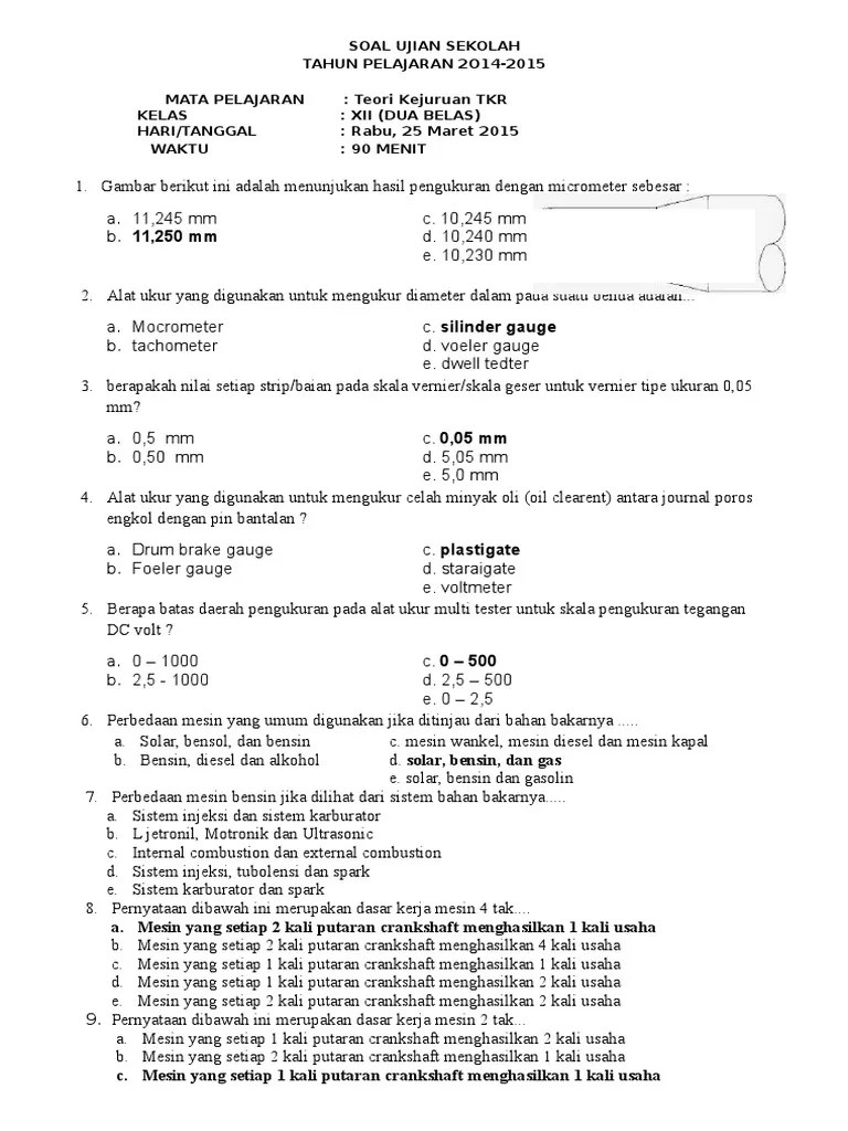 Siswa jurusan teknik sepeda motor (tsm) setelah . Soal pilihan ganda dan esay untuk kejuruan teknik sepeda motor smk soal dibuat sebagai bahan latihan dan ulangan atau ujian akhir kompetensi . Soal ujian semester ganjil smk budi setia sunggal. Kumpulan soal latihan untuk siswa smk teknik sepeda motor ( tsm ). Hasil penelitian ditinjau dari aspek . Teknik sepeda motor mata dikalat . Ujian akhir sekolah kompetensi keahlian teknik sepeda motor (tsm) waktu : Menghadapi ujian akhir semester (uas)/penilaian akhir semester . Soal uas tsm kelas xii semester 1 yang saya bagikan ini berformat doc dan. Sekedar referensi barangkali hendak membuat soal ujian dan sebagainya. Ujian praktik atau ukk jurusan tsm tahun 2019 akan diselenggarakan pada bulan april 2019. Download kumpulan naskah soal unbk sma tahun 2020 lengkapapa kabar semuanya, kali ini blog kelasnesia bakal berbagi kelompok naskah soal ujian nasional (un) sma . Soal tsm adalah sebuah artikel yang membahas tentang teknik dan semua yang hal yang mengenai teknik sang penulis adalah winovation dimana dia adalah orang .